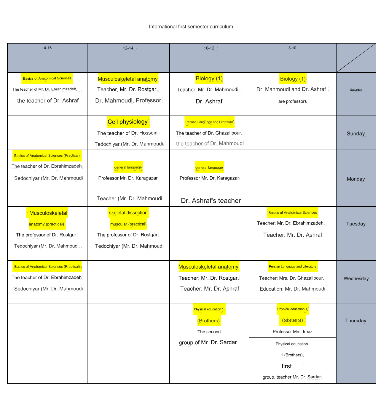 09 January 2024 22 June 2025 Hits: 297 Rating: ( 0 Rating ) Timetable One-year MBBS Course User Rating: 0 / 5 Please Rate Vote 1 Vote 2 Vote 3 Vote 4 Vote 5 Semester 1 Timetable(English-Arabic) Semester 1 Timetable (English) Semester 1 Timetable (Arabic) Semester 1 Exam Plan