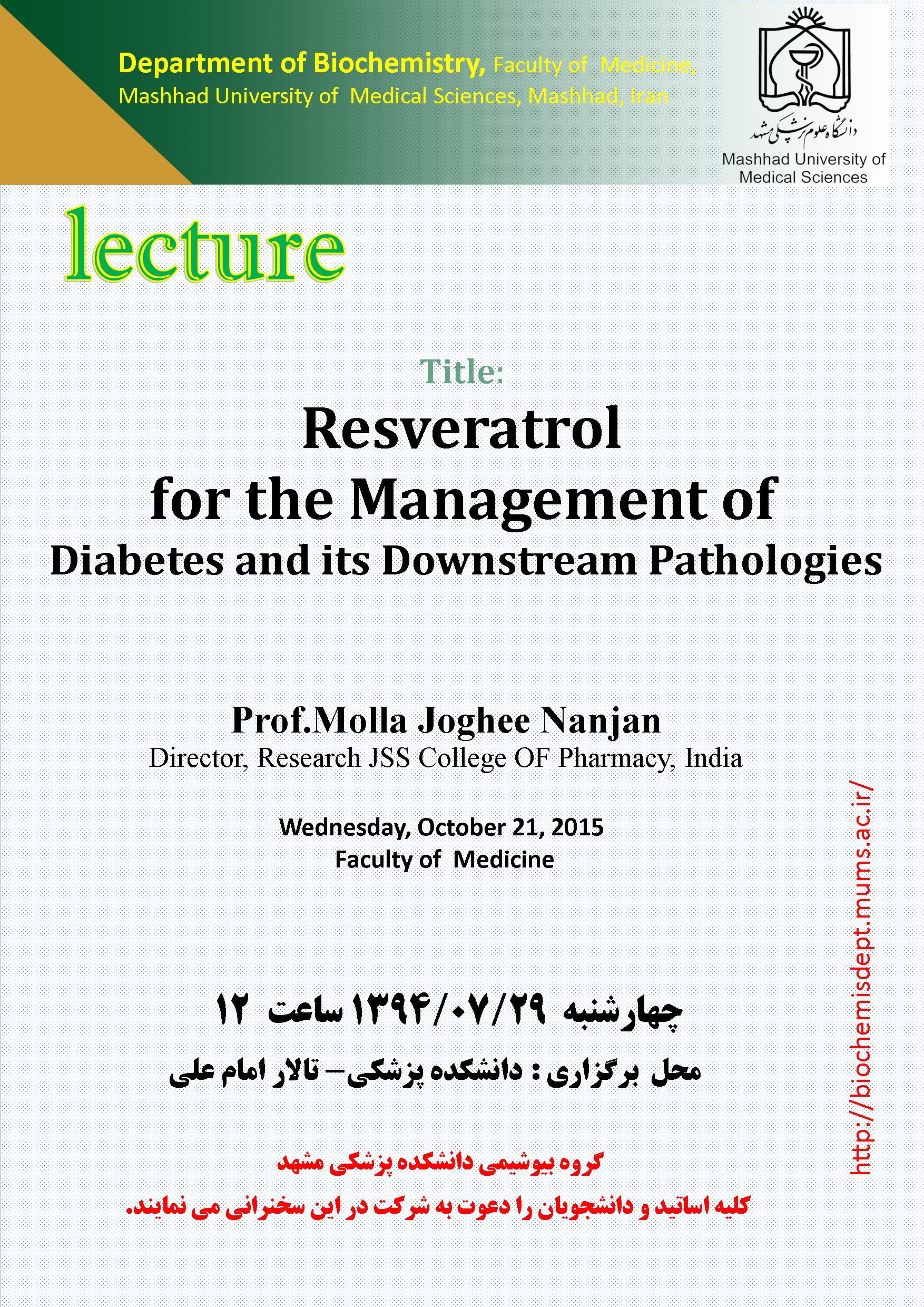 گروه بیوشیمی دانشکده پزشکی مشهد کلیه اساتید و دانشجویان را دعوت به شرکت در این سخنرانی می نمایند.