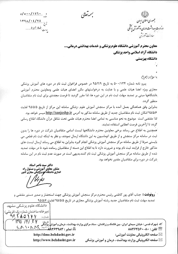 30 تیر 1395 30 تیر 1395 بازدید: 496 امتیاز: ( 0 Rating ) تمدید ثبت نام در دوره های آموزش پزشکی مجازی ویژه اعضا هیات علمی امتیاز کاربران لطفا رای دهید رای 1 رای 2 رای 3 رای 4 رای 5 قبلی بعدی