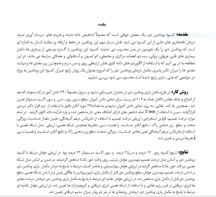 به گزارش وبدای دانشکده دکترکیهان گنودی دانشجوی مقطع دکترا از پایان نامه خود با عنوان" بکارگیری الگوریتم های داده کاوی جهت بررسی عوامل مرتبط شامل دریافتهای غذایی و عناصر کمیاب با میزان تاثیر پذیری مکمل یاری