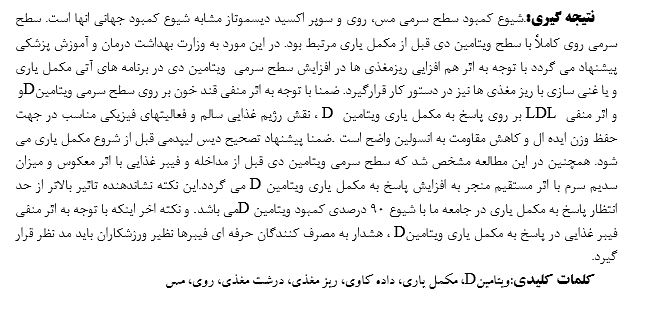 ویتامین D با راهنمایی اساتید دكترمجید عیور مبرهن ودکتر سعید اسلامی حسن آبادی دفاع کرد.