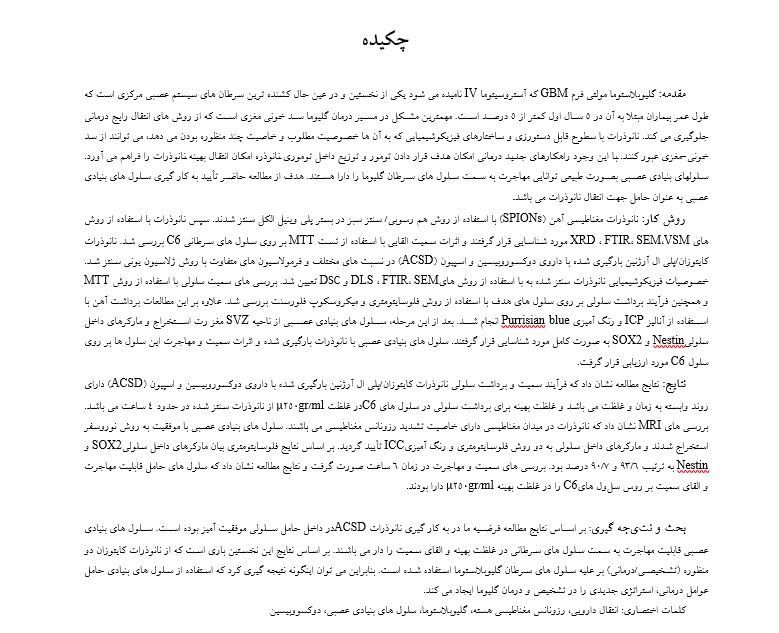 دوکسوروبیسین جهت درمان هدفمند گلیوبلاستوما"با راهنمایی اساتید دكتر رضا کاظمی اسکویی ودکتر محسن تفقدی