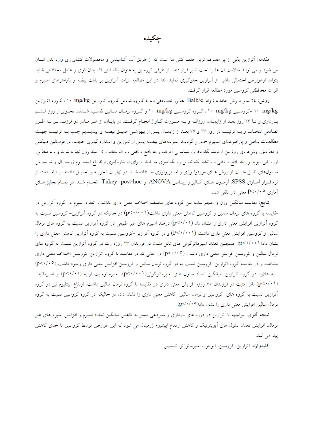 به گزارش وبدای دانشکده ،معصومه فانی دانشجوی کارشناسی ارشدعلوم تشریح از پایان نامه خود با عنوان" مطالعه اثرات مواجهه با آترازین در طی حاملگی و شیردهی بر آپوپتوز سلولهای بیضه فرزندان موش نژاد Balb/C و