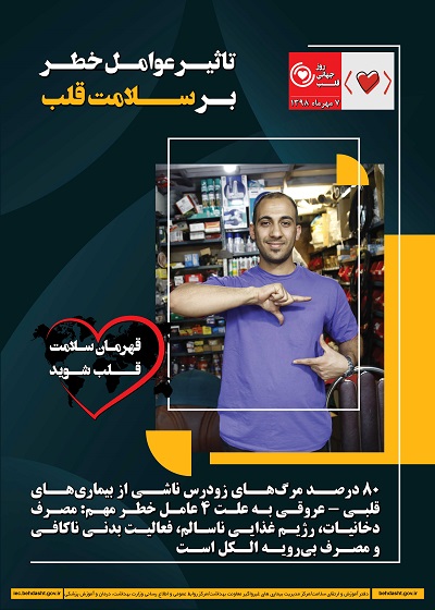 قائم مقام معاون بهداشت دانشگاه با تاکید بر اینکه این روند نقش مهمی در حساس سازی و اطلاع رسانی در خصوص سلامت قلب و عروق دارد گفت : در سال 2019 از افراد دنیا درخواست شده با دادن یک قول به کسی که دوستش دارند یا برایشان مهم است، یک قهرمان قلب باشند. قولی برای تغذیه سالم تر، فعال تر بودن و نه گفتن به دخانیات. یک قول ساده .... برای قلب من، برای قلب شما، برای قلب همه ما