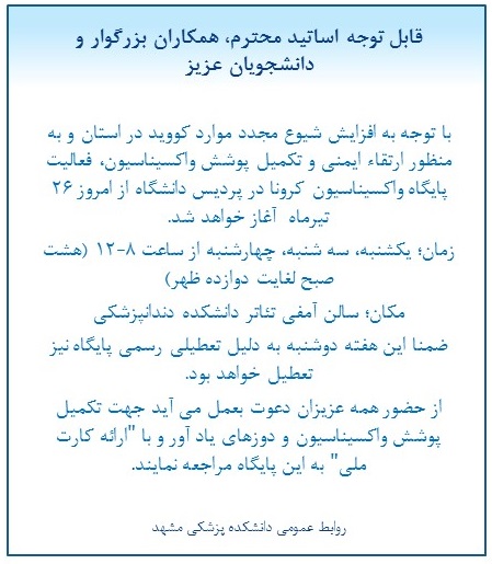 28 تیر 1401 28 تیر 1401 بازدید: 420 امتیاز: ( 0 Rating ) اطلاعیه واکسیناسیون امتیاز کاربران لطفا رای دهید رای 1 رای 2 رای 3 رای 4 رای 5 قبلی بعدی