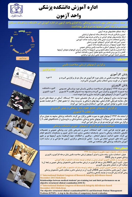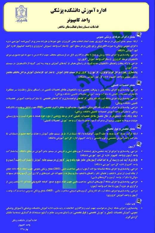 نمونه هایی از دستاوردهای اداره آموزش دانشکده پزشکی در نمایشگاه دستاوردها و اقدامات دانشگاه علوم پزشکی مشهد.
