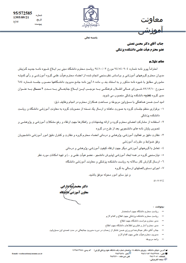 انتصاب جناب آقای دکتر محسن نعمتی عضو هیات علمی دانشگاه به عنوان مدیر گروه تغذیه دانشکده پزشکی را تبریک عرض مینماییم و با آرزوی توفیق هرچه بیشتر برای ایشان، امیدواریم در ارتقاء و دستیابی به اهداف آموزشی پژوهشی به موفقیت های هرچه بیشتر دست یابند.
