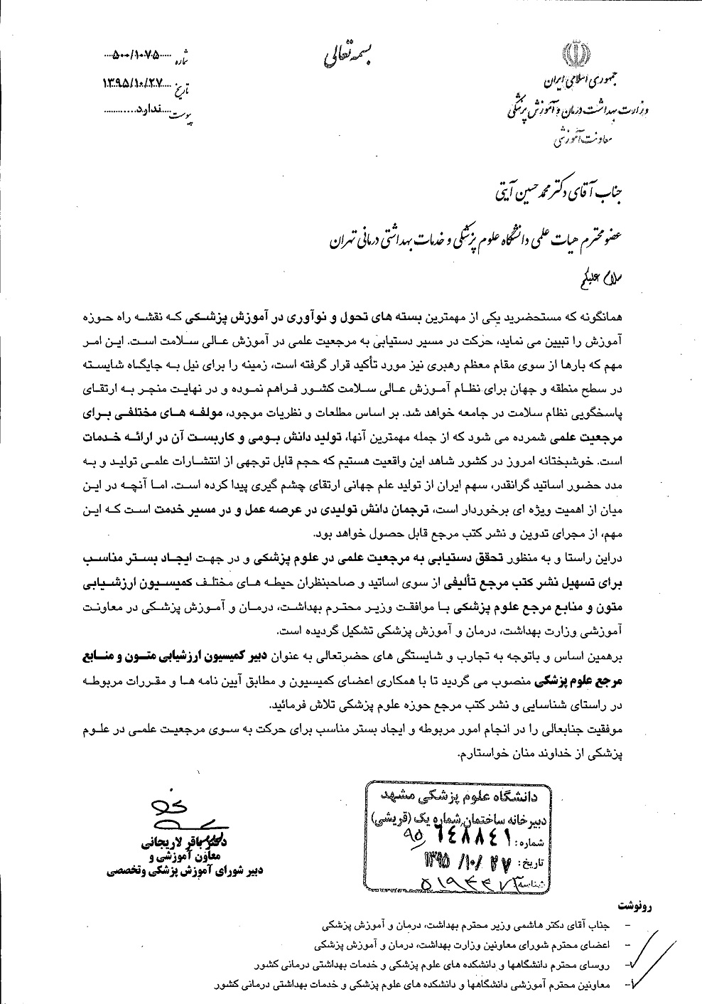 09 بهمن 1395 09 بهمن 1395 بازدید: 465 امتیاز: ( 0 Rating ) تشکیل کمیسیون ارزشیابی متون و منابع مرجع علوم پزشکی امتیاز کاربران لطفا رای دهید رای 1 رای 2 رای 3 رای 4 رای 5 قبلی بعدی