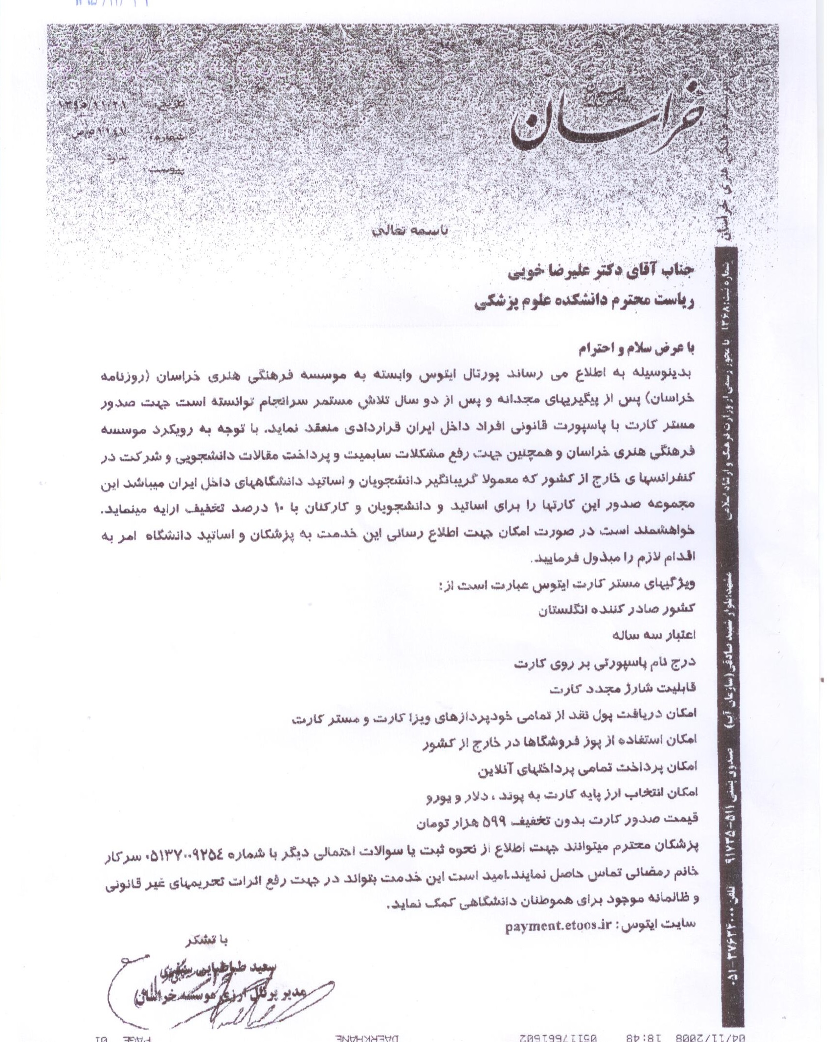 26 بهمن 1395 26 بهمن 1395 بازدید: 527 امتیاز: ( 0 Rating ) صدور مستر کارت جهت اساتید و دانشجویان توسط موسسه فرهنگی ایتوس امتیاز کاربران لطفا رای دهید رای 1 رای 2 رای 3 رای 4 رای 5 قبلی بعدی