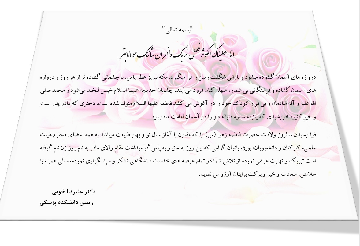26 اسفند 1395 26 اسفند 1395 بازدید: 396 امتیاز: ( 0 Rating ) تبریک ریاست محترم دانشکده پزشکی به مناسبت روز زن امتیاز کاربران لطفا رای دهید رای 1 رای 2 رای 3 رای 4 رای 5 قبلی بعدی