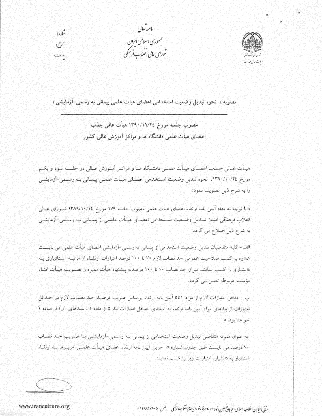 04 ارديبهشت 1396 04 ارديبهشت 1396 بازدید: 419 امتیاز: ( 0 Rating ) نحوه تبدیل وضعیت استخدامی اعضای هیات علمی پیمانی به رسمی- آزمایشی امتیاز کاربران لطفا رای دهید رای 1 رای 2 رای 3 رای 4 رای 5 قبلی بعدی