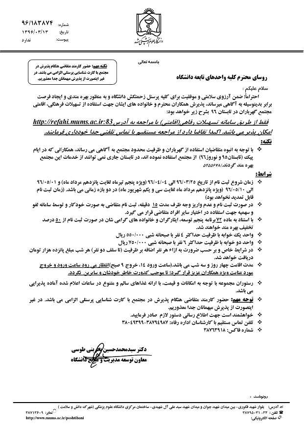 16 خرداد 1396 16 خرداد 1396 بازدید: 487 امتیاز: ( 0 Rating ) مجتمع اقامتی گهرباران آماده پذیرایی از همکاران محترم در ایام تابستان امتیاز کاربران لطفا رای دهید رای 1 رای 2 رای 3 رای 4 رای 5 قبلی بعدی