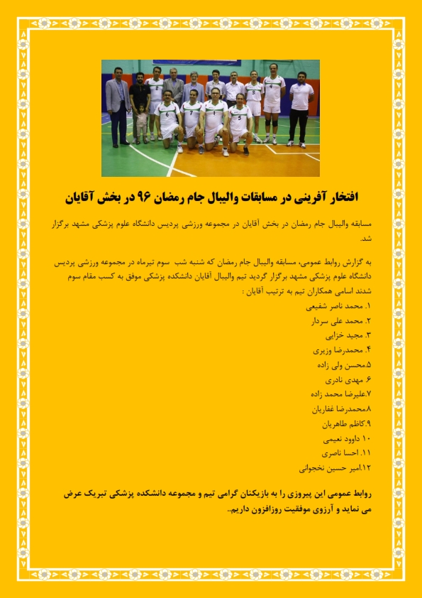 04 تیر 1396 04 تیر 1396 بازدید: 466 امتیاز: ( 0 Rating ) افتخار آفرینی در مسابقات والیبال جام رمضان 96 در بخش آقایان امتیاز کاربران لطفا رای دهید رای 1 رای 2 رای 3 رای 4 رای 5 قبلی بعدی