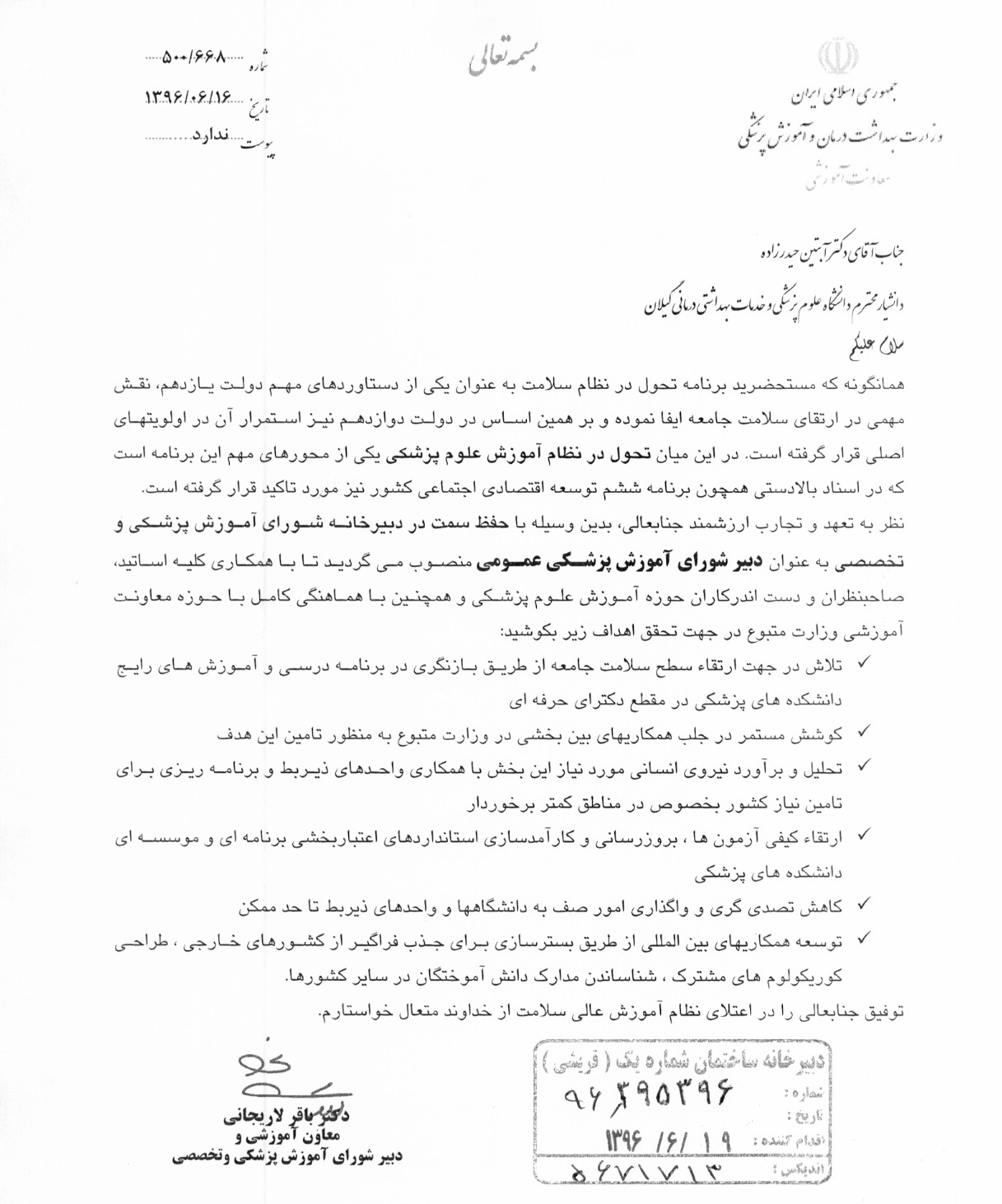 10 مهر 1396 10 مهر 1396 بازدید: 382 امتیاز: ( 0 Rating ) انتصاب جناب آقای دکتر آبتین حیدرزاده به عنوان دبیر شورای آموزش پزشکی عمومی امتیاز کاربران لطفا رای دهید رای 1 رای 2 رای 3 رای 4 رای 5 قبلی بعدی