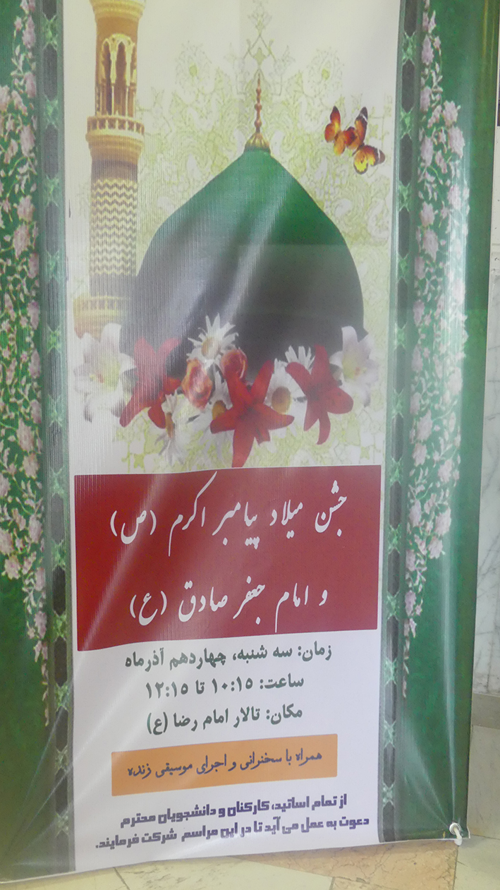 به گزارش وبدای دانشکده ، جشن میلاد پیامبر (ص) و امام جعفر صادق (ع) امروز سه شنبه 96/9/14 در دانشکده پزشکی برگزار شد . گفتنی است این جشن به همت گروه فیزیک پزشکی دانشکده ، استاد فرهیخته جناب دکتر بحرینی ،اساتید و کارکنان گروه برگزارشد.که همراه با سخنرانی ،موسیقی سنتی ، و اهدا جوایز بود