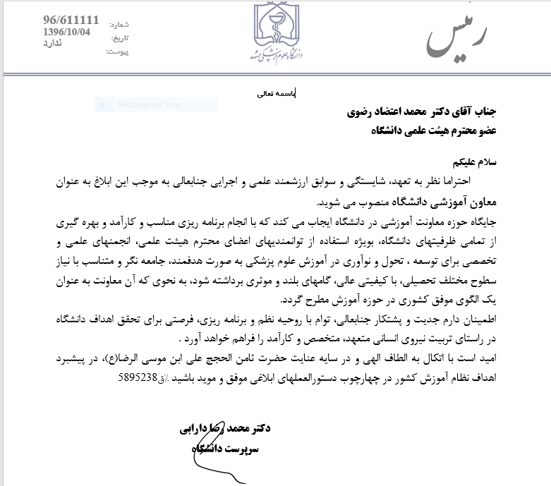 06 دی 1396 06 دی 1396 بازدید: 337 امتیاز: ( 0 Rating ) انتصاب معاون آموزشی دانشگاه امتیاز کاربران لطفا رای دهید رای 1 رای 2 رای 3 رای 4 رای 5 قبلی بعدی