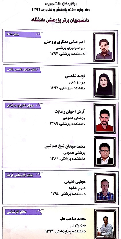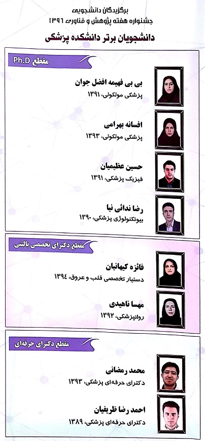 19 دی 1396 19 دی 1396 بازدید: 343 امتیاز: ( 0 Rating ) برگزیدگان دانشجویی پژوهش و فناوری دانشکده پزشکی امتیاز کاربران لطفا رای دهید رای 1 رای 2 رای 3 رای 4 رای 5 موفقیت دانشجویان برگزیده دانشکده پزشکی در جشنواره هفته پژوهش و فناوری 1396 دانشگاه، را به این عزیزان تبریک عرض می نمائیم. روابط عمومی دانشکده پزشکی قبلی بعدی