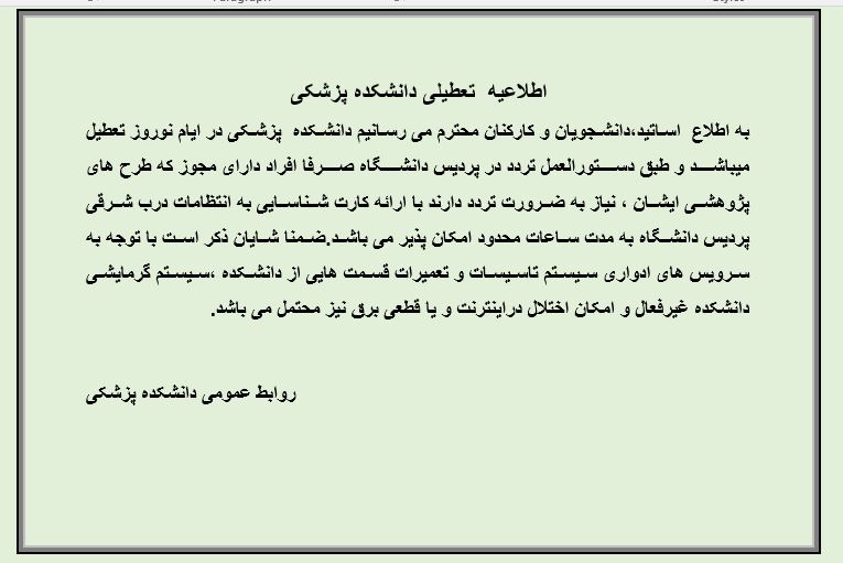 28 اسفند 1396 28 اسفند 1396 بازدید: 306 امتیاز: ( 0 Rating ) اطلاعیه تعطیلی دانشکده پزشکی در ایام نوروز امتیاز کاربران لطفا رای دهید رای 1 رای 2 رای 3 رای 4 رای 5 قبلی بعدی
