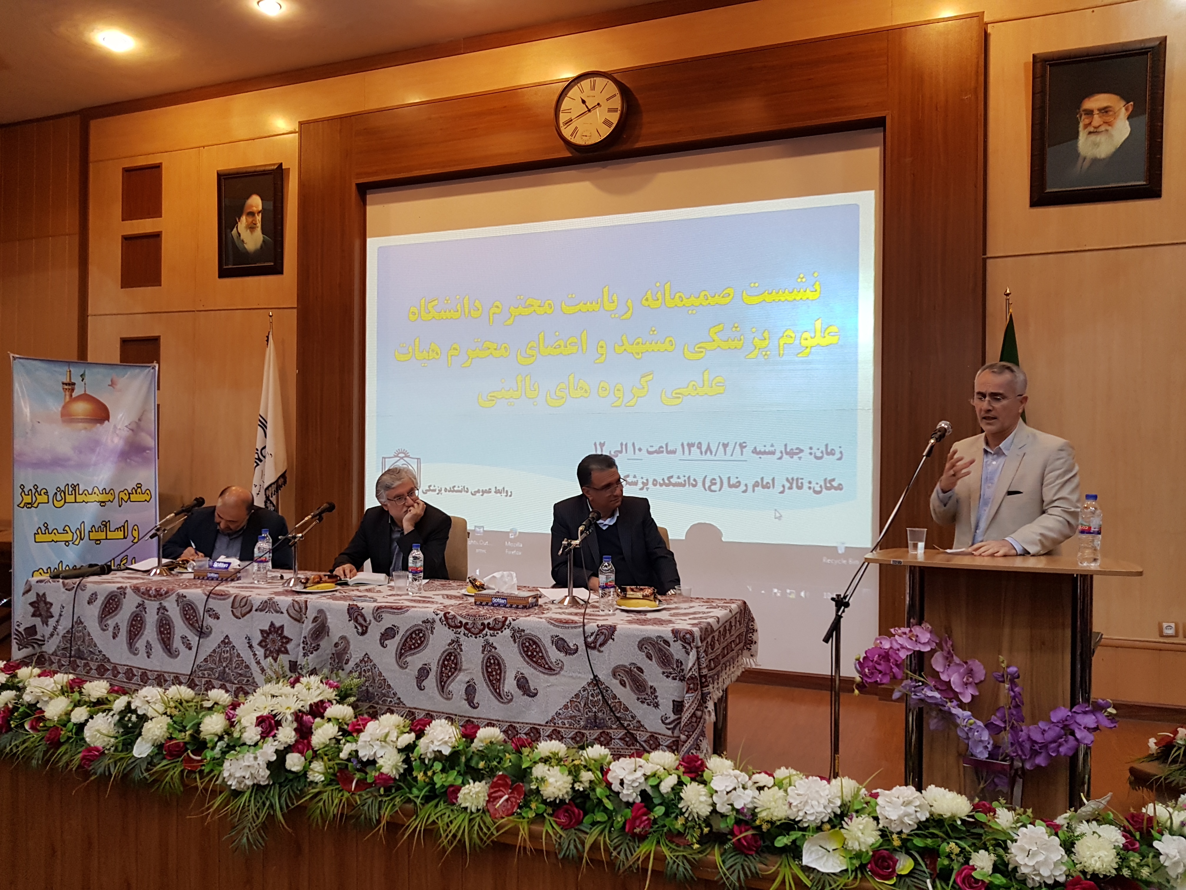 پیش از سخنان رییس دانشگاه علوم پزشکی مشهد، جمعی از اعضای هیات علمی گروه های بالینی