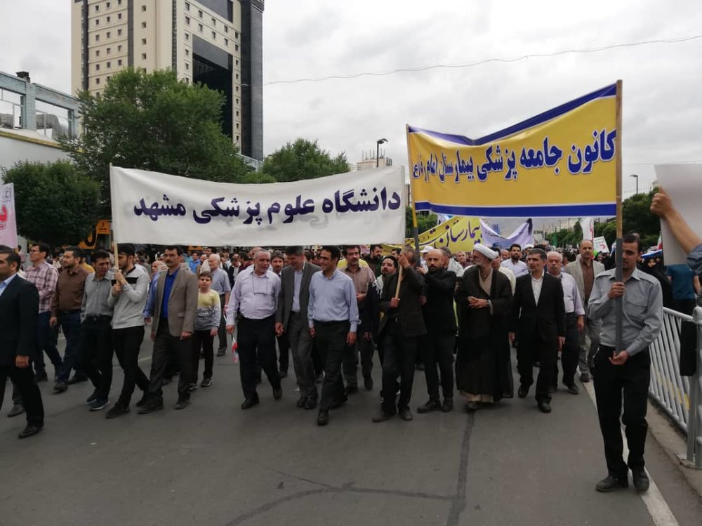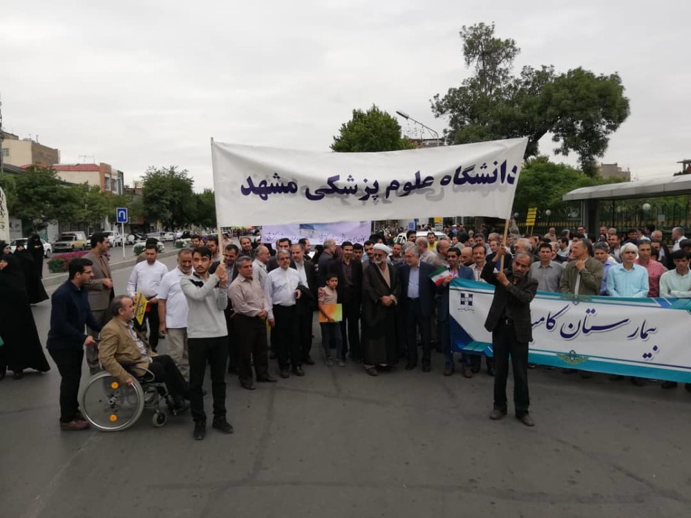 دانشجويان و كاركنان روزه دار دانشگاه علوم پزشكي مشهد با حضور در راهپيمايي با شكوه روز