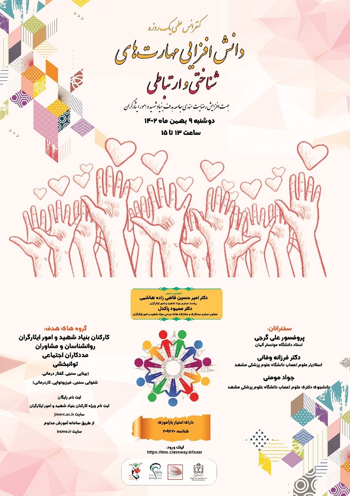 کارگاه دانش افزایی مهارت های ارتباطی با مشارکت گروه علوم اعصاب دانشکده پزشکی و بنیاد جانبازان با هدف راهبردهای خدمات رسانی و پاسخگویی بهتر به جانبازان عزیز برگزار گردید.