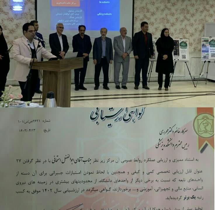 تقدیر ریاست دانشگاه علوم پزشکی مشهد از ریاست دانشکده و روابط عمومی دانشکده به دلیل اقدامات شاخص، در راستای پیشبرد برنامه های روابط عمومی