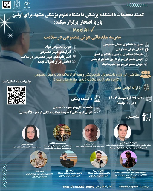 با هدف ترویج برنامه های هوش مصنوعی و تبادل دانش اساتید و دانشجویان مدرسه هوش مصنوعی در دانشکده پزشکی راه اندازی شد.