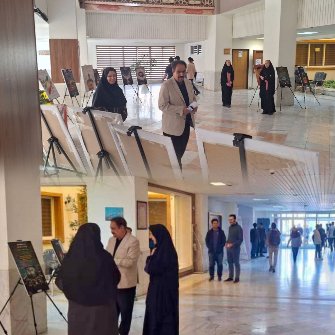 در ابتدای برنامه، نمایشگاهی در لابی دانشکده پزشکی با حضور استقبال گسترده اساتید، دانشجویان و کارکنان آغاز شد. در این بخش، پوسترهای علمی-هنری با مضامینی چون ماهیت جنگ روانی، و راه های مقابله با آن به نمایش درآمد.